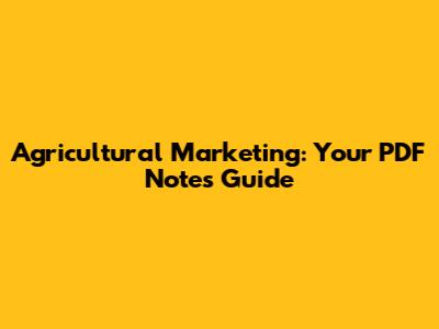Agricultural Marketing: Your PDF Notes Guide