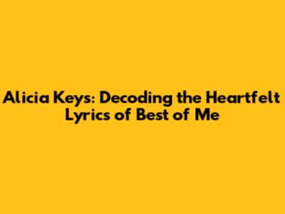 Alicia Keys: Decoding The Heartfelt Lyrics Of 'Best Of Me'