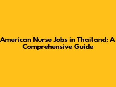 American Nurse Jobs In Thailand: A Comprehensive Guide