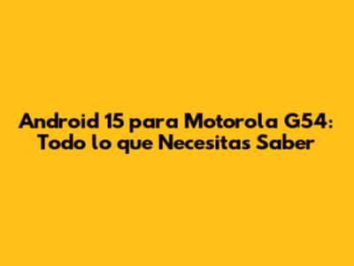 Android 15 Para Motorola G54: Todo Lo Que Necesitas Saber