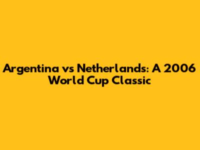 Argentina Vs Netherlands: 2006 World Cup Classic