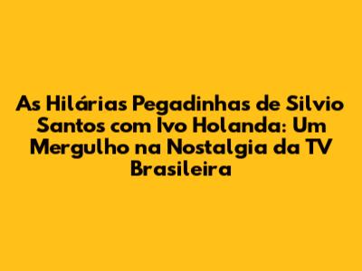 Ah, as pegadinhas! Quem não se lembra da adrenalina, da surpresa e das gargalhadas que elas proporcionavam? E quando falamos de pegadinhas, é impossível não mencionar a parceria icônica entre Silvio Santos e Ivo Holanda. Neste artigo, vamos mergulhar no universo dessas pegadinhas que marcaram época na televisão brasileira, revivendo momentos hilários e relembrando como elas conquistaram o coração do público. Prepare-se para uma viagem no tempo, onde a risada é garantida!