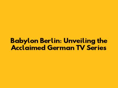 Babylon Berlin: Unveiling The Acclaimed German TV Series