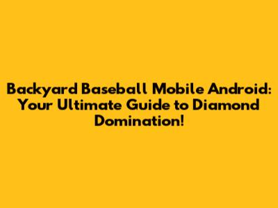 Backyard Baseball: Your Guide To Android Glory!