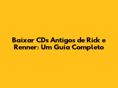 Baixar CDs Antigos de Rick e Renner é o sonho de muitos fãs apaixonados pela música sertaneja romântica. Rick e Renner, com suas canções que marcaram época, conquistaram corações e embalaram muitos romances. Se você está em busca de reviver esses sucessos, este guia completo é para você! Vamos explorar como encontrar e baixar os CDs antigos da dupla, garantindo uma experiência musical nostálgica e autêntica. Prepare-se para relembrar os grandes hits e descobrir como ter acesso a essa preciosidade musical.