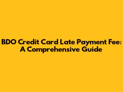 BDO Credit Card Late Payment Fees: What You Need To Know