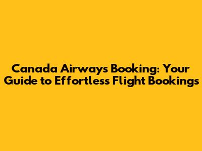 Canada Airways: Your Guide To Effortless Flight Bookings