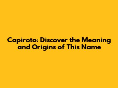 Capiroto: Discover The Meaning And Origins Of This Name