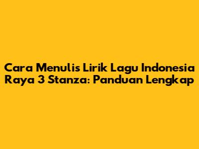 Menulis lirik lagu Indonesia Raya 3 stanza adalah sebuah tugas yang mulia dan penuh tantangan. Lagu kebangsaan kita, yang penuh dengan semangat perjuangan dan cinta tanah air, adalah warisan berharga yang harus kita jaga dan lestarikan. Dalam panduan ini, kita akan membahas secara mendalam bagaimana cara menulis lirik lagu Indonesia Raya dengan tiga stanza, lengkap dengan makna, struktur, dan tips yang akan membantu Anda menghasilkan karya yang indah dan bermakna.