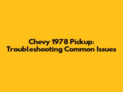 Chevy 1978 Pickup: Troubleshooting Common Issues