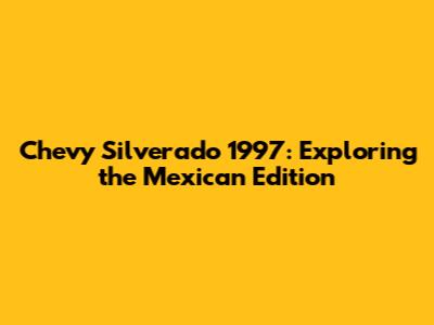 Exploring the possibility of a 1997 Chevy Silverado having a 'Mexican edition' opens up a fascinating avenue for understanding the nuances of automotive manufacturing and marketing. While there might not be a formally designated 'Mexican edition,' the potential for unique features, specifications, and market considerations makes it a worthwhile investigation. Whether you're a collector, a truck enthusiast, or simply curious, delving into the details of these vehicles can be a rewarding experience. Happy trucking, amigos!