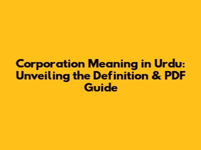 PDF Guide to Corporation Meaning in Urdu
