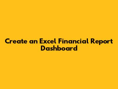 Create An Excel Financial Report Dashboard