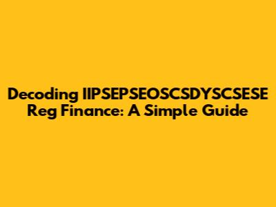 Ever stumbled upon a term that looks like alphabet soup and wondered what it means? IIPSEPSEOSCSDYSCSESE Reg Finance might just be one of those! No stress, guys! Let’s break it down in simple terms and make sense of this financial jargon. This guide is designed to provide a clear and comprehensive understanding, ensuring that even those without a finance background can grasp the core concepts. By the end of this article, you'll not only know what IIPSEPSEOSCSDYSCSESE Reg Finance stands for, but also how it impacts the financial world. So, let’s dive in and decode this mystery together!