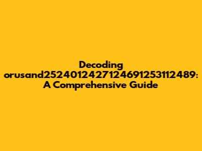 Decoding Orusand2524012427124691253112489: A Comprehensive Guide