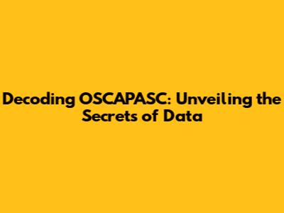 Decoding OSCAPASC: Unveiling The Secrets Of Data