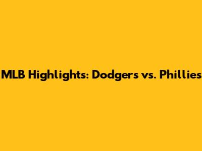 Dodgers Vs. Phillies: MLB Highlights And Top Plays