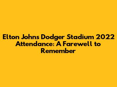 Alright, let's get down to the nitty-gritty: the attendance numbers. While the exact figures might vary slightly depending on the source, it's safe to say that Elton John's 2022 Dodger Stadium concert drew tens of thousands of fans each night. We're talking about a stadium packed to the rafters with people eager to witness this historic event. The official numbers hovered around the 50,000 mark per show, making it one of the most well-attended concerts of the year. Think about the logistics of hosting an event of this size. From security to concessions to seating arrangements, every detail had to be meticulously planned to ensure a smooth and enjoyable experience for the fans. The fact that the organizers were able to pull it off so seamlessly is a testament to their professionalism and dedication. But the attendance numbers are more than just statistics; they represent the collective love and admiration for Elton John. Each ticket sold was a vote of confidence, a way for fans to show their appreciation for his music and his impact on their lives. The stadium was filled with people from all walks of life, united by their shared love of Elton John's songs. The atmosphere was electric, with fans singing along to every word and dancing in the aisles. It was a true celebration of music and community. Comparing the attendance figures to other concerts held at Dodger Stadium, Elton John's farewell shows rank among the top. This underscores his enduring popularity and his ability to draw a crowd, even after decades in the music industry. The high attendance also reflects the pent-up demand for live music after the pandemic. People were eager to get out and experience the thrill of a live concert, and Elton John's farewell show was the perfect opportunity to do so. The numbers tell a story of dedication, enthusiasm, and a shared love of music. They represent the countless hours that fans spent listening to Elton John's songs, the memories that were made, and the connections that were forged. It was a night to remember, and the attendance numbers are a testament to its significance.
