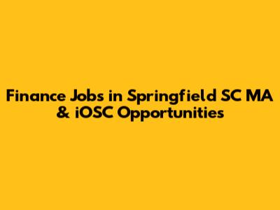 Finance Jobs In Springfield SC MA & IOSC Opportunities