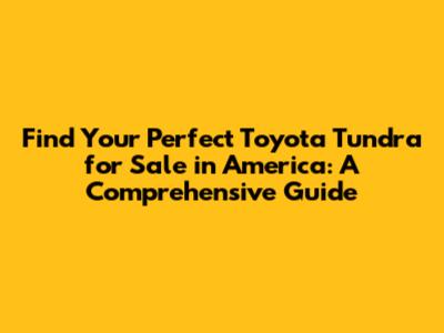 By following these tips, you'll be well on your way to finding the perfect Toyota Tundra for sale that fits your needs and budget.