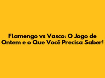 Flamengo Vs Vasco: O Jogo De Ontem E O Que Você Precisa Saber!
