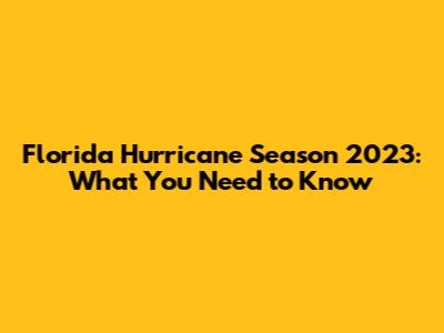 Florida Hurricane Season 2023: What You Need To Know