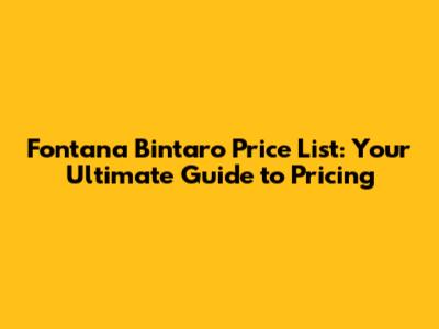 Fontana Bintaro Price List: Your Guide To Pricing