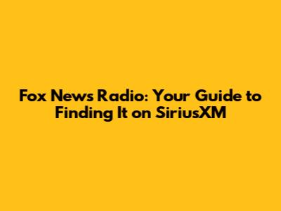 Fox News Radio: Sirius Channel Guide