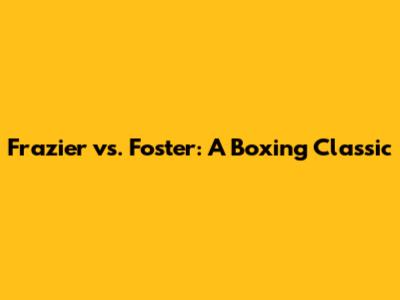Frazier Vs. Foster: A Boxing Classic