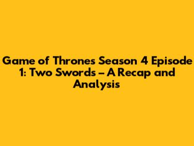 Hey everyone! Let's dive deep into the thrilling Season 4 Episode 1 of Game of Thrones, titled "Two Swords." This episode, as you might remember, marked a significant turning point in the series. It set the stage for the dramatic events to come, introducing new characters, and showcasing the aftermath of the Red Wedding. We're going to break down the key moments, analyze the character developments, and explore the implications for the future of Westeros. So, buckle up, because we're about to journey back to the world of ice and fire!