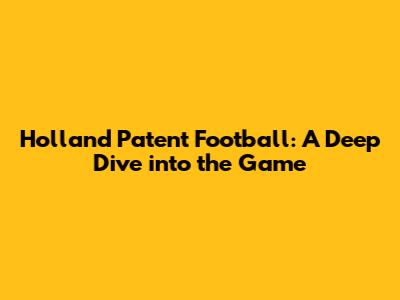 Holland Patent Football: A Deep Dive Into The Game
