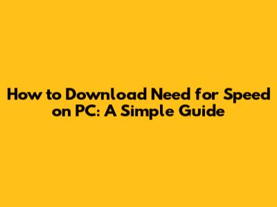 How To Download Need For Speed On PC: A Simple Guide