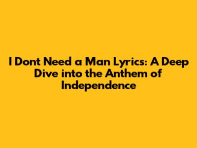 I Don't Need A Man Lyrics: A Deep Dive Into The Anthem Of Independence