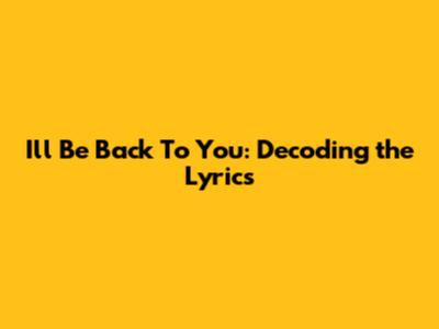 I'll Be Back To You: Decoding The Lyrics