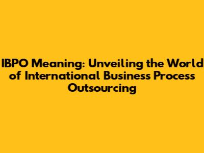 Hey guys! Ever heard the term IBPO floating around? If you're scratching your head wondering, "What in the world does IBPO mean?" Well, you're in the right place! We're gonna dive deep into the fascinating world of International Business Process Outsourcing, break down what it is, why it's a big deal, and how it's changing the game for businesses all over the globe. So, buckle up, because we're about to embark on an exciting journey into the realm of IBPO!