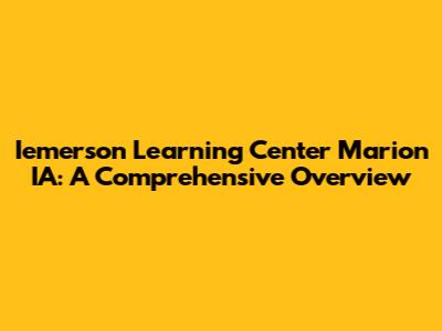 Hey guys! Let's dive into something super important for those of you in Marion, Iowa – the Iemerson Learning Center. This place isn't just any old institution; it's a hub for education, growth, and community engagement. Whether you're a parent seeking the best for your kids, a student aiming to boost your skills, or simply someone curious about what Marion has to offer, you're in the right place. We're going to break down everything you need to know about the Iemerson Learning Center, from its programs and services to its impact on the local community. So, grab a coffee (or your favorite beverage), get comfy, and let's explore this fantastic resource together. This detailed guide covers everything you need to know about the Iemerson Learning Center in Marion, IA. We'll explore its history, mission, and the wide range of programs it offers to the community. Get ready to discover why the Iemerson Learning Center is considered a cornerstone of education and personal development in Marion.