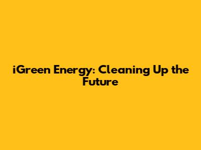 IGreen Energy: Cleaning Up The Future