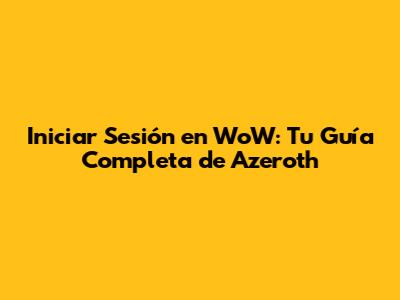 Iniciar Sesión En WoW: Tu Guía Completa De Azeroth