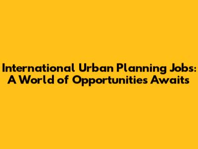 International Urban Planning Jobs: Your Global Career Guide