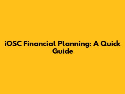 IOSC Financial Planning: A Quick Guide