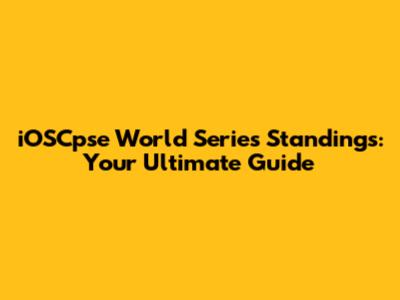IOSCpse World Series Standings: Your Ultimate Guide
