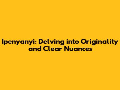 Ipenyanyi: Originality And Clear Nuances