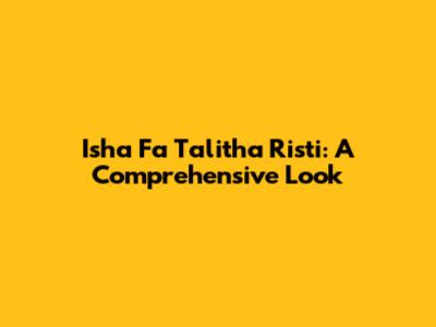Hey everyone! Today, we're diving deep into the world of Isha Fa Talitha Risti. You might be wondering who or what this is, and that's exactly what we're here to explore. We'll be breaking down everything you need to know, from the basics to the finer details, making sure you get a full picture. So, grab a drink, get comfortable, and let's get started on this journey to understand Isha Fa Talitha Risti.