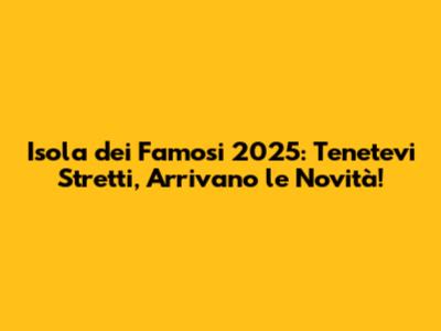 L'Isola dei Famosi 2025 promette di essere un'edizione imperdibile, con un cast stellare, nuove sfide, location mozzafiato e colpi di scena a non finire. Restate sintonizzati per non perdere nessuna delle ultime notizie, e preparatevi a vivere un'altra indimenticabile avventura televisiva! Vi terremo aggiornati su tutti i rumors e le anticipazioni, per non farvi sfuggire nulla. Allora, cosa aspettate? Preparatevi all'Isola dei Famosi 2025!