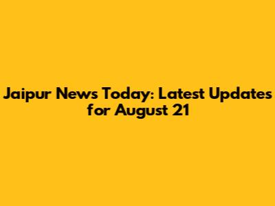 Jaipur News Today: Latest Updates For August 21