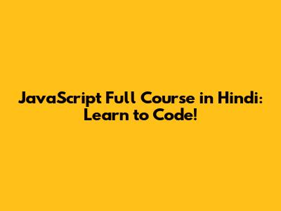 JavaScript Full Course In Hindi: Learn To Code!