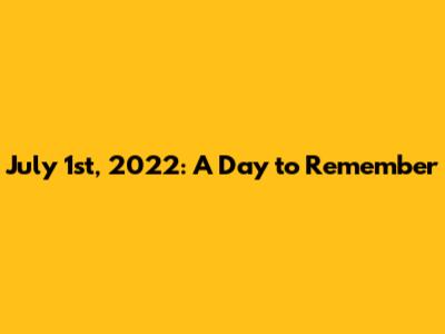 The Significance of July 1st, 2022
