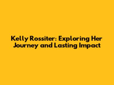 Kelly Rossiter: Exploring Her Journey And Lasting Impact