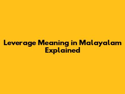 Leverage Meaning In Malayalam Explained