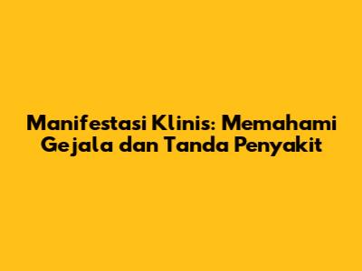 Memahami manifestasi klinis adalah langkah awal untuk mengelola dan mengatasi berbagai masalah kesehatan. Bayangkan tubuh Anda sebagai sebuah sistem yang kompleks. Ketika ada sesuatu yang tidak beres, sistem ini akan mengirimkan sinyal-sinyal peringatan. Manifestasi klinis adalah sinyal-sinyal tersebut. Sinyal ini dapat berupa gejala subjektif yang dirasakan pasien, seperti rasa sakit, kelelahan, atau mual. Atau bisa berupa tanda objektif yang dapat diamati dan diukur oleh tenaga medis, seperti suhu tubuh yang tinggi, perubahan tekanan darah, atau hasil tes laboratorium yang abnormal. Dengan mengidentifikasi dan memahami sinyal-sinyal ini, dokter dapat mulai menyusun teka-teki untuk menemukan apa yang sebenarnya terjadi di dalam tubuh pasien.